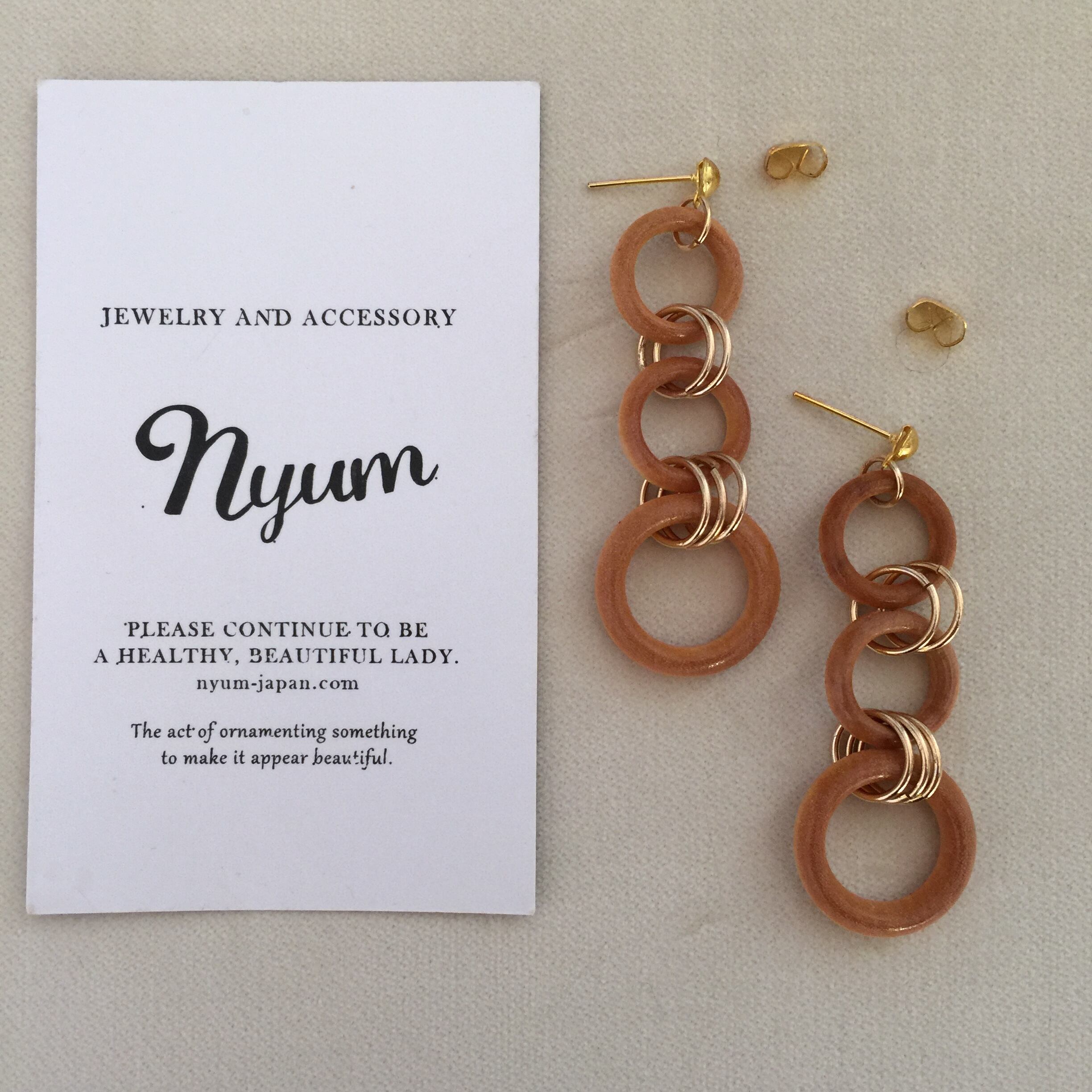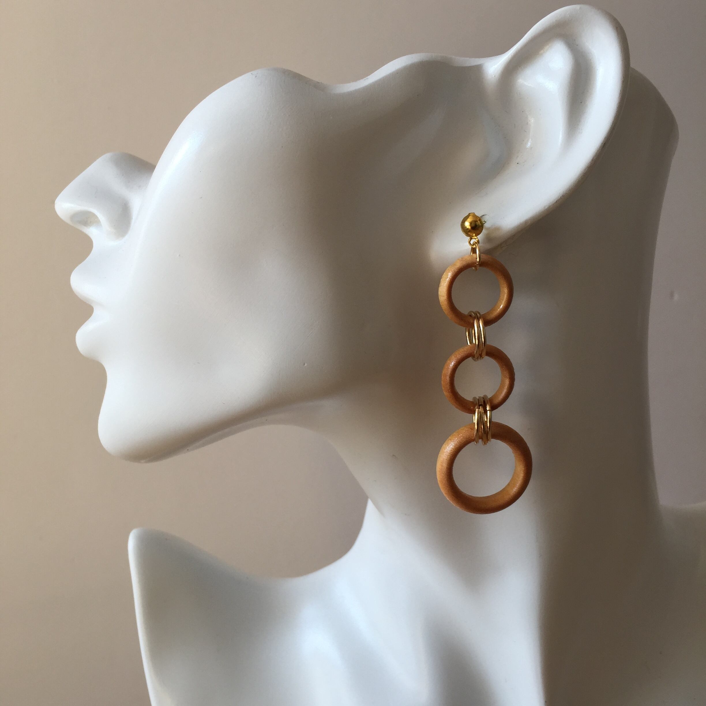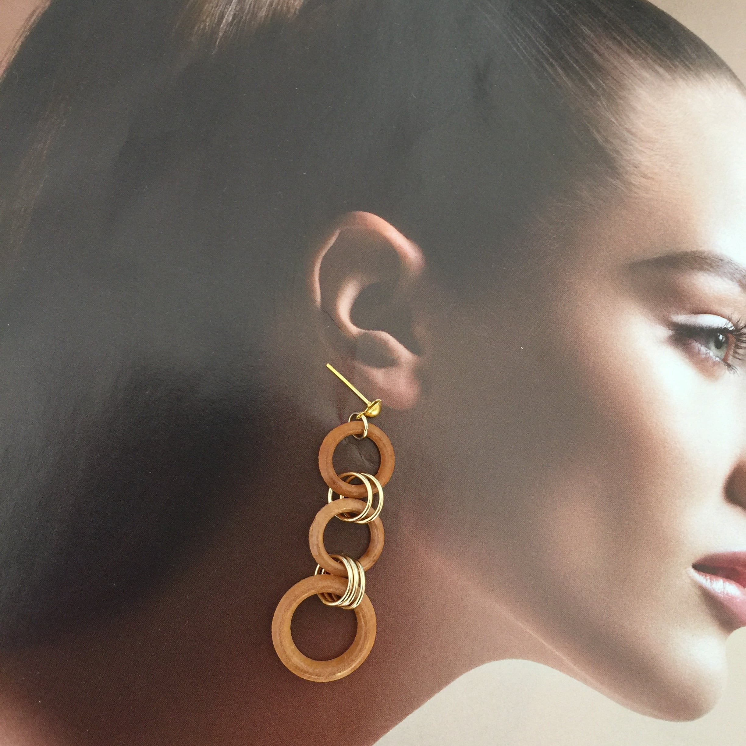 【ピアス/イヤリング】3連サイズグラデウッドリング ピアスorイヤリング